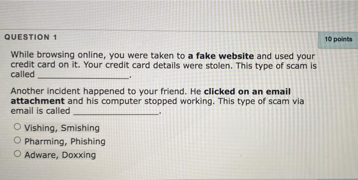Solved 10 Points Question 1 While Browsing Online You Were Chegg Com